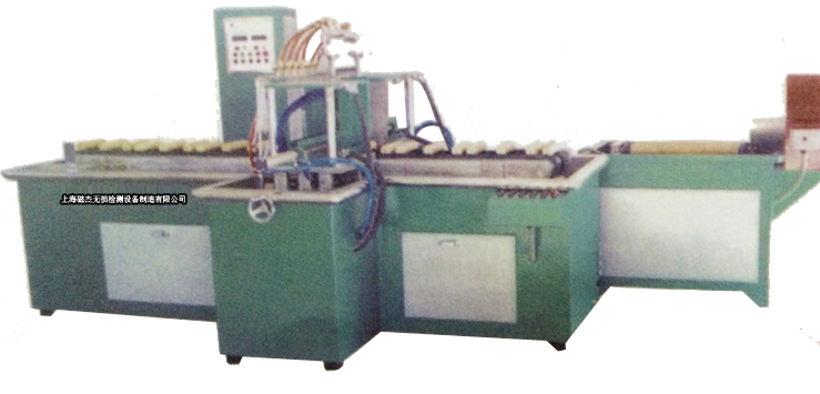 通过不同的夹具对拉伸弹簧、压缩弹簧进行磁粉探伤检测,整条检测线采用链条传输机构传输,周向采用芯棒感应法磁化,纵向采用直接通电法磁化。弹簧的退磁采用穿过远离法退磁。